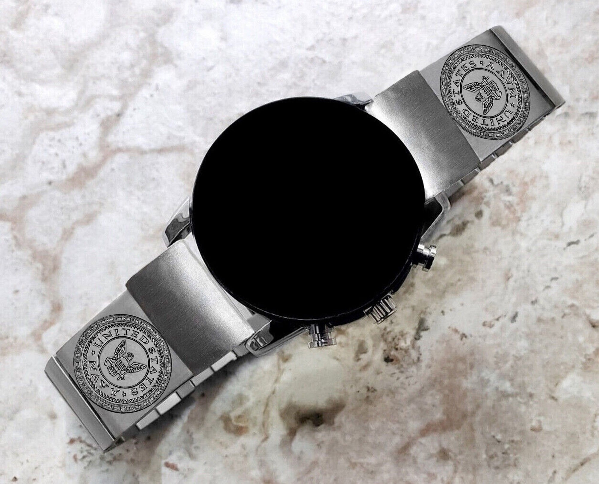 US Navy Engraved Watch Band for Garmin Foretrex 601 701 801 901 Balistic, Instinct 3 50mm 2X, Enduro 3 2 1, Quatix 8 51mm 7X 6X 3, Tactix 8 51mm, 7 AMOLED Pro, epix Pro 51mm Stainless Steel Strap NE1 -A26