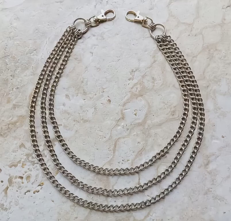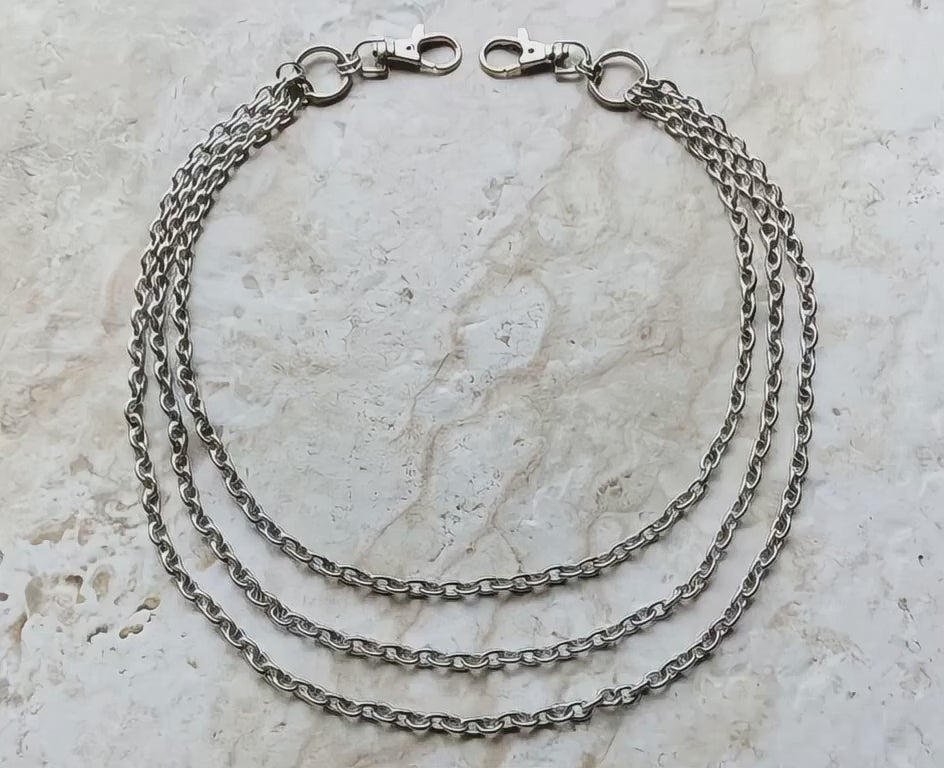 Fashion Wallet Chain Triple Curb Silver Shiny Color Stainless Steel Cable Unisex Customisable Tarnish Resistant Very Strong 21" Inches 54cm