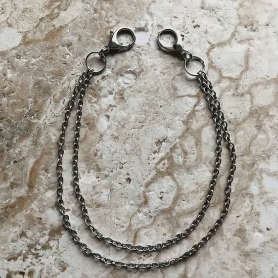 With the round key rings which are two, you can separate the chains and create two single wallet chains. They have two lobster clasp as well for easier and faster hook up on/off.