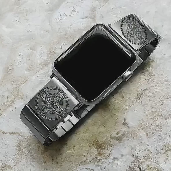 Celtic Cross Engraved Watch Band Compatible with Apple iWatch Ultra 2 9 8 7 SE 6 5 4 3 2 1 Case 38mm 40mm 41mm 42mm 44mm 45mm 49mm Stainless Steel Strap CC2
