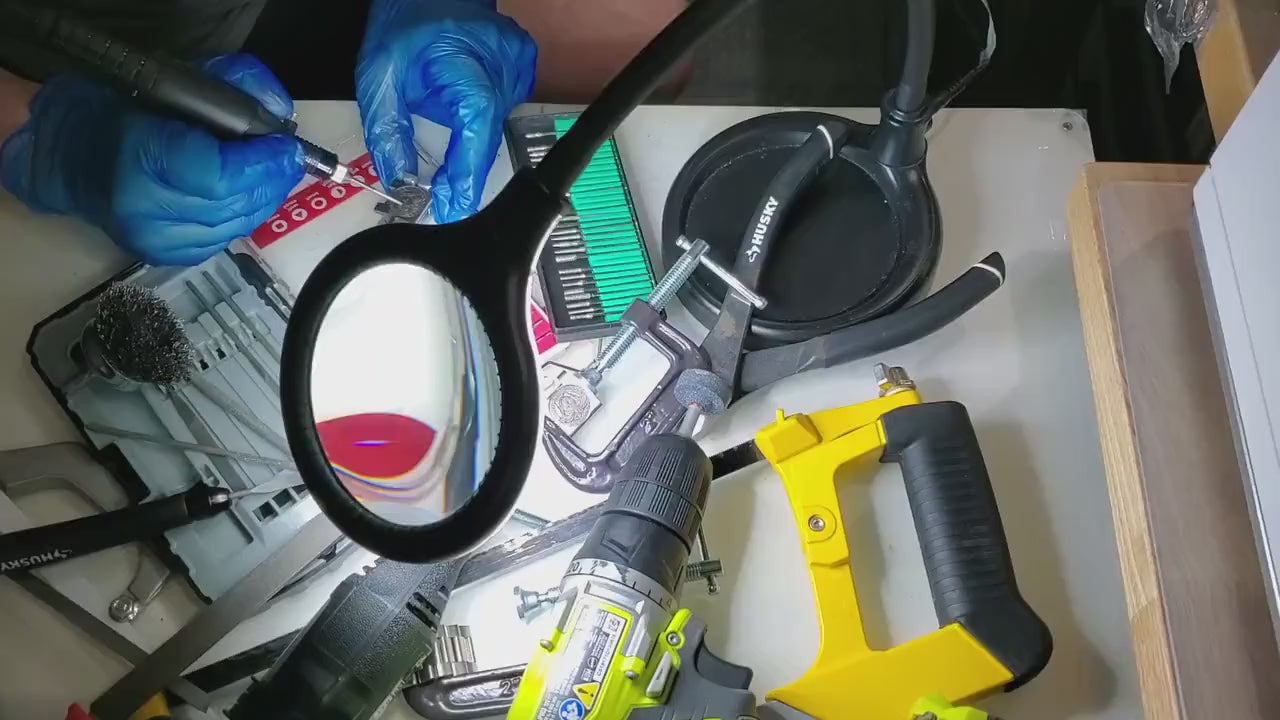 It's take about 2-3 days to make one band. Engraving is made with a special micro engraving-pen and different shaped diamond beads. Also I use a magnifying glass to create more detailed and clean work. Other Tools Used: Metal Compass, Caliper, Micro Chisels for Metal, Files, Drills - Micro and Normal Size, Cutting Discs, Polishing Beads. It takes a long time to make, but the results are impressive and will stay forever on the watch band!