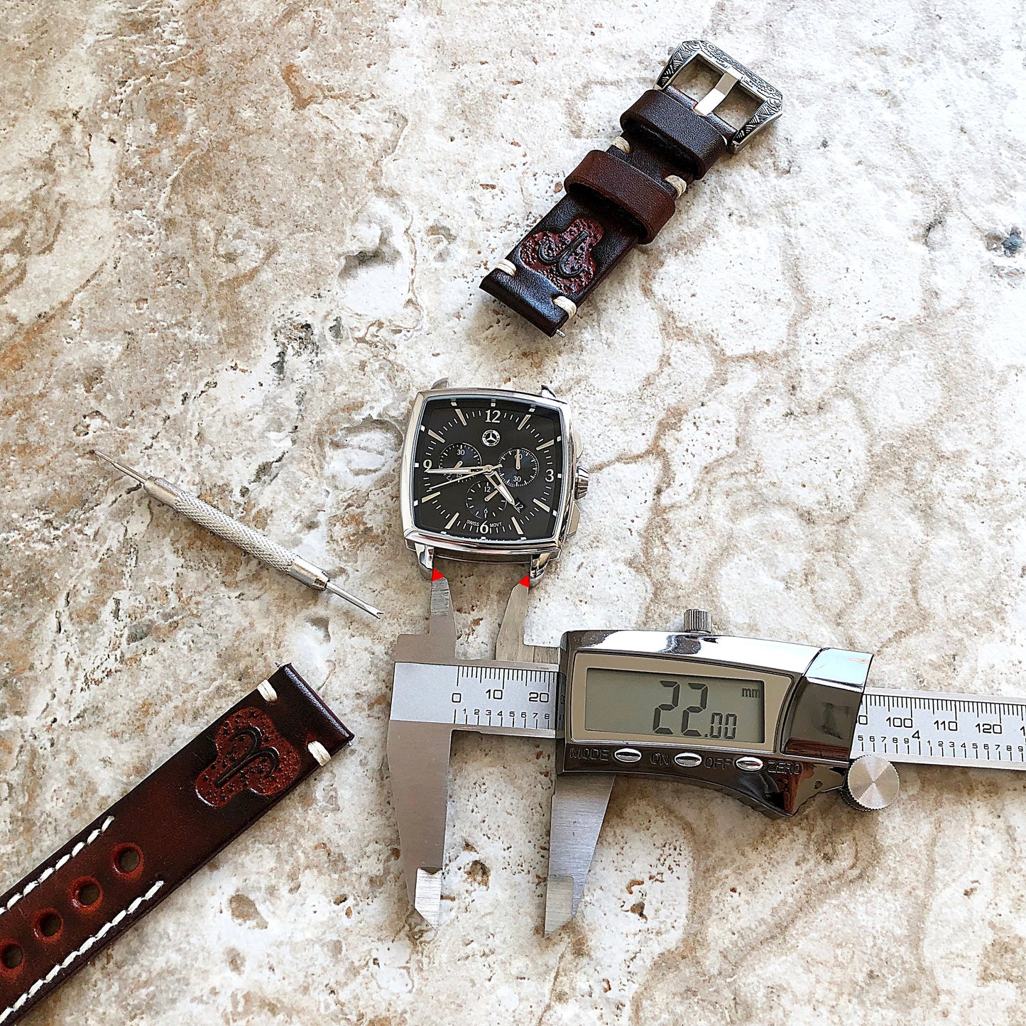 *Depends of the watch case size, these bands fit wrist sizes from 6" up to 8.5" - (from 150mm up to 216mm)