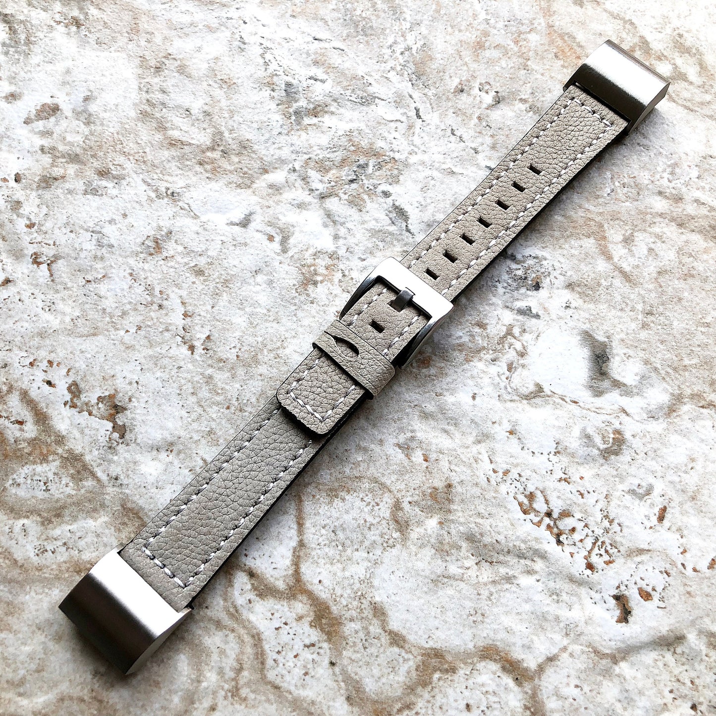 Fitbit Charge 2 Gray Soft Leather Band Strap Compatible with Fitness Tracker Wristband Bracelet with Stitches and Adapters Quick Release