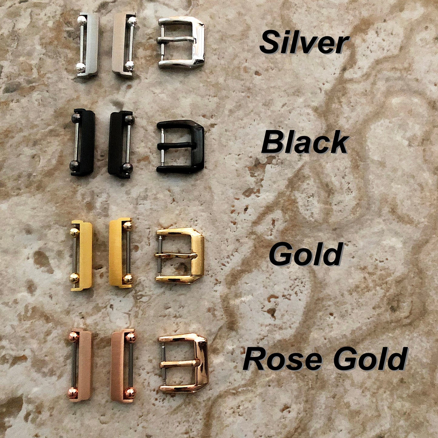 Versa/Versa 2/Lite comes with Quick Release Adapters, Grommets and Polished Buckle in 4 Variations (Silver, Black, Gold, Rose Gold)