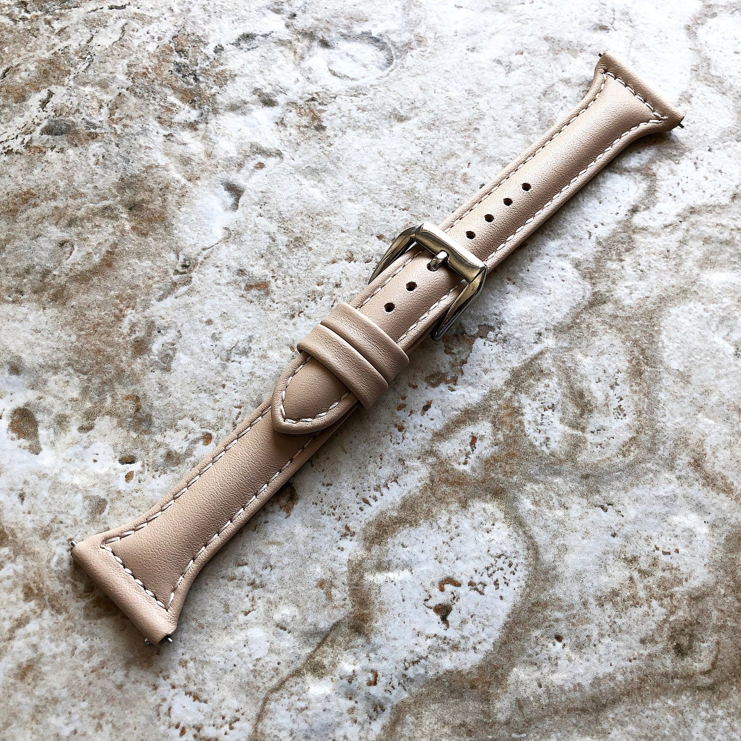 Garmin Beige Band for Vivomove 3, HR, Trend Luxe Sport Style Models Slim Leather with Stitches Bracelet Cuff Wristband Quick Release B20