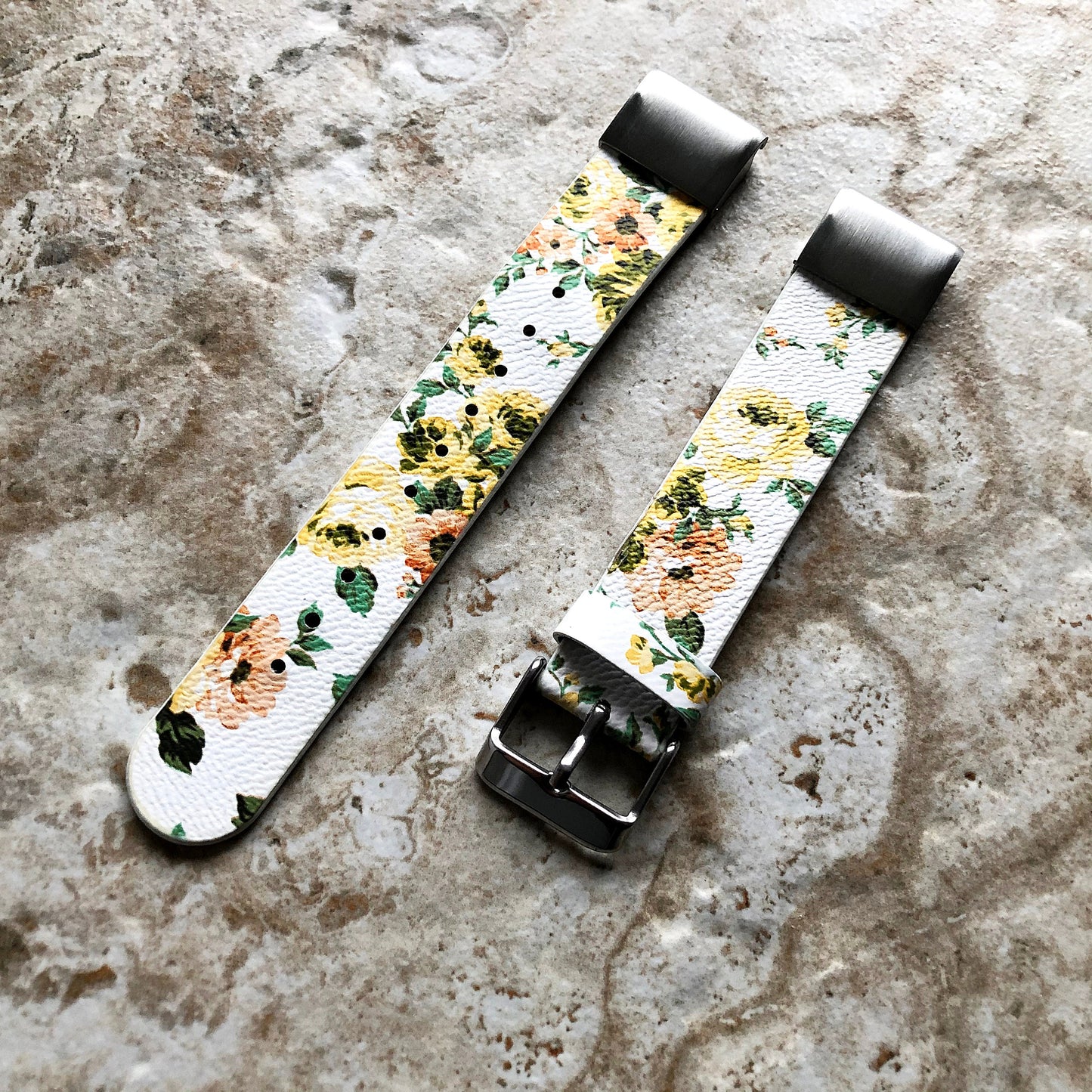 Garmin Yellow Floral FL1 Band for D2 Delta S Instinct 2S Descent Mk2S Mk3 Mk3i 43mm Approach S70 42mm Leather Quick Fit Watch Strap A20B18